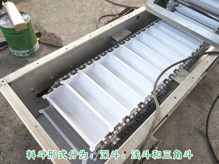 深鬥的鬥中與料鬥(dòu)後壁夾角大,每個料鬥可裝載較多的物料,但較難卸空,適用於運送幹燥的鬆散物料