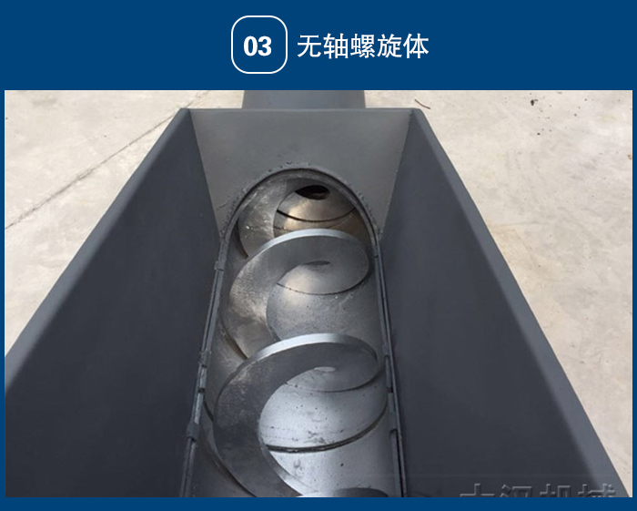 該設(shè)備采用無軸螺旋式,當物料從輸送機的進料鬥進(jìn)入,依靠螺旋葉片的旋轉(zhuǎn)將物料推移滑行,沿U型輸送槽送至出料口,並與壓榨機或垃圾小車配套,將物料(liào)進行下一(yī)步處理。