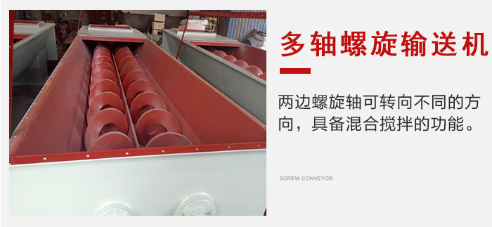 而多軸螺旋輸送機則是兩(liǎng)邊螺旋軸轉向不同的方向,具體混合(hé)攪拌的功(gōng)能。
