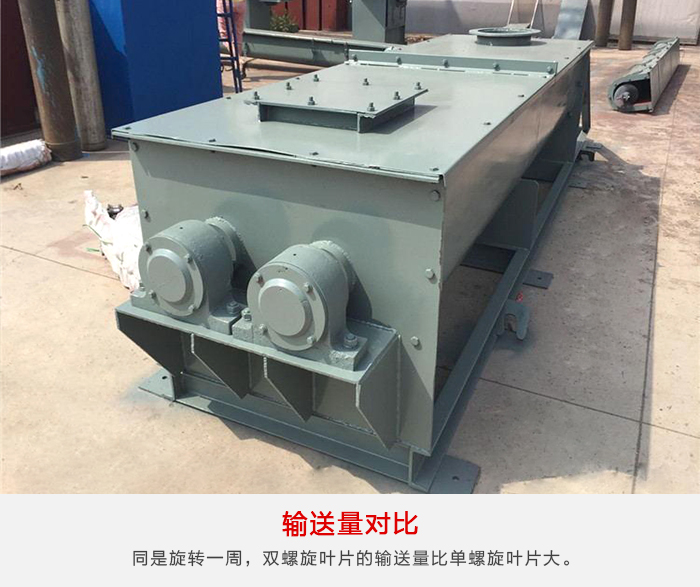 雙螺旋和單螺旋在同樣轉速(sù)下,因為雙螺旋葉片的螺(luó)旋角比單螺旋葉片(piàn)高,因此雙螺旋葉片的輸(shū)送流(liú)量比單(dān)螺旋葉片大,同是旋轉(zhuǎn)一周,雙螺旋葉片的輸(shū)送量比單螺旋葉片大。