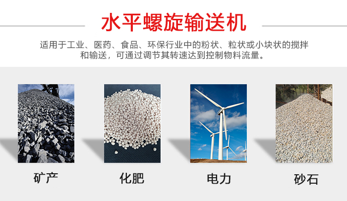 水平螺(luó)旋輸送機適用於(yú)工業、醫藥(yào)、食(shí)品、行業(yè)中的粉(fěn)狀、粒狀或小塊狀(zhuàng)的攪拌和輸送,可通過調(diào)節其轉(zhuǎn)速達到(dào)控製(zhì)物料流(liú)量。具有可靠的工作穩定性喂料均勻,使(shǐ)用壽命長等特點。