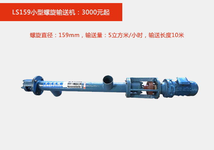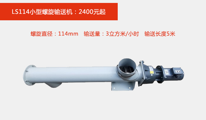 小(xiǎo)型螺旋輸送機有(yǒu)114,159,160,200等4種型號(hào),不同型號對應的輸送量,輸送長度,價格自然(rán)不同;例: