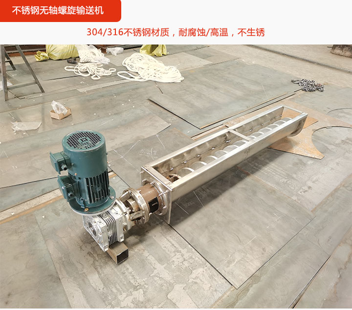 不鏽鋼無軸螺旋輸送機:304/316不鏽鋼材質,耐腐(fǔ)蝕/高溫,不生鏽,食品、醫藥行業專用。