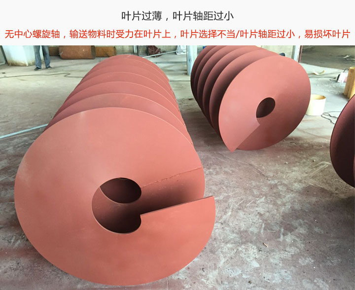 葉片過(guò)薄:無軸螺旋輸送機沒有中間(jiān)軸,輸送物料時(shí),受力(lì)點都在螺旋葉片上,葉(yè)片的(de)厚度會影響機器的試機使(shǐ)用情況,因此要根據使用(yòng)物料選擇對應(yīng)厚度的(de)螺旋(xuán)葉片