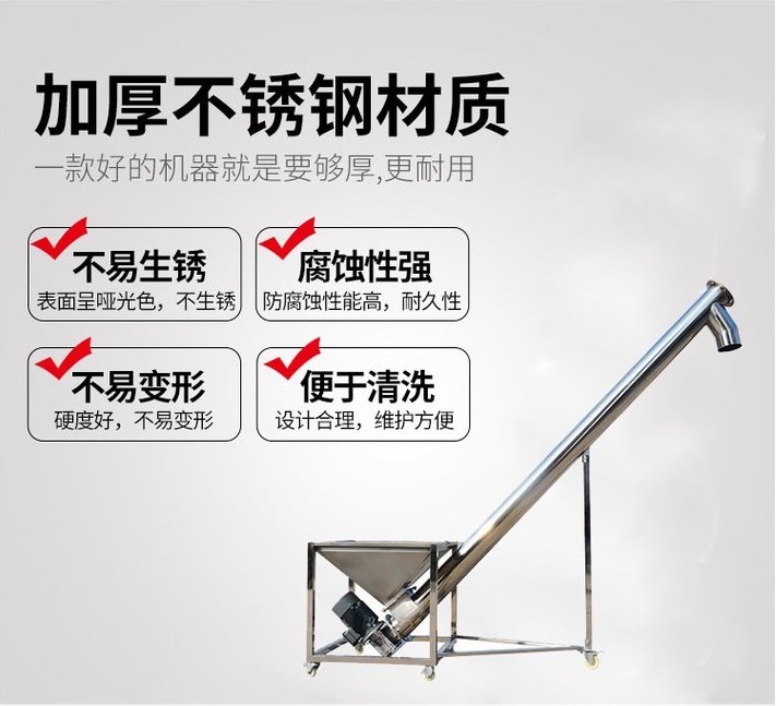 以上是對不鏽鋼螺旋輸(shū)送機的介紹(shào),304/316L不鏽鋼材質的螺旋(xuán)輸送機(jī),耐(nài)腐蝕,耐高溫,易清潔,不(bú)易生鏽,是食品(pǐn)、醫藥、化(huà)工行業常用的輸送設備。