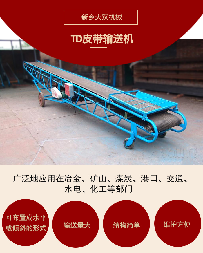 DTⅡ、TD75型皮帶由於輸送量大,結構(gòu)簡單,維護方便,成本低(dī),通用性強等優點,而被廣泛地應(yīng)用在冶金、礦山、煤炭、港口、交通、水電、化工等部門,進(jìn)行裝車、裝船、轉載或堆積各種常溫狀態(tài)的鬆散密度為500~2500kg/m3各(gè)種散(sàn)狀物料或成件物(wù)品。由單機或多機組合(hé)成運輸係統來輸送(sòng)物料,根據工藝要求可布置成水平或傾斜的形式,DTⅡ型皮帶輸送機除了可滿足水平或傾斜輸送(sòng)要求外,還可(kě)采用帶(dài)凸弧段、凹弧段與直線段組合的(de)輸送形式。輸(shū)送機允許輸送的(de)物(wù)料塊度取決於帶寬、帶速、槽角和傾角,也取(qǔ)決(jué)於大塊物料出(chū)現的頻率。該輸送機適用的工作環境溫度一般為-25~+40℃。我公司還生(shēng)產輕型皮帶輸送機和移動式輸送機。