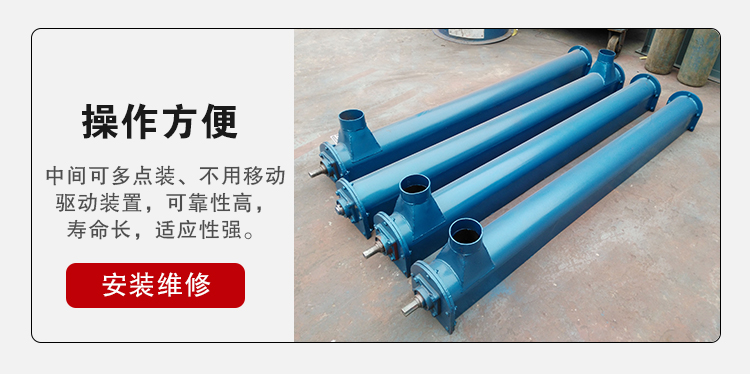 管型螺旋輸送機是利用螺旋旋轉而推移物料(liào)的連續輸送設備,適用輸送麵粉、穀(gǔ)類、水泥、化肥、灰渣、沙子、石子、煤粉、小塊煤等物料。由於機體內有效流通麵積小,螺旋輸送機(jī)不宜輸磅易變質的、粘性太大、易結塊(kuài)的(de)物(wù)料。