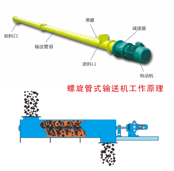 螺旋管式輸送機是依靠電機(jī)帶(dài)動螺旋回轉,對物料進行推移從而實現,輸送的目的的一種連續輸送設備,可(kě)以水平,傾斜,垂直輸送粉末,顆粒及小塊狀物料(liào)。有結構電(diàn)簡單,橫截麵小,密封性好,操作方便,維(wéi)修員容量的(de)。
