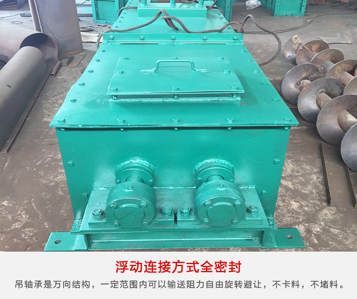 各傳動部位都是采用浮動連接方(fāng)式,吊軸承是萬向結構,使吊軸(zhóu)承(chéng)、螺旋體和尾部總能形成一個整體的旋浮(fú)體,在(zài)一定範圍內可以(yǐ)輸送阻(zǔ)力自由旋(xuán)轉避讓,不卡料,不(bú)堵料。