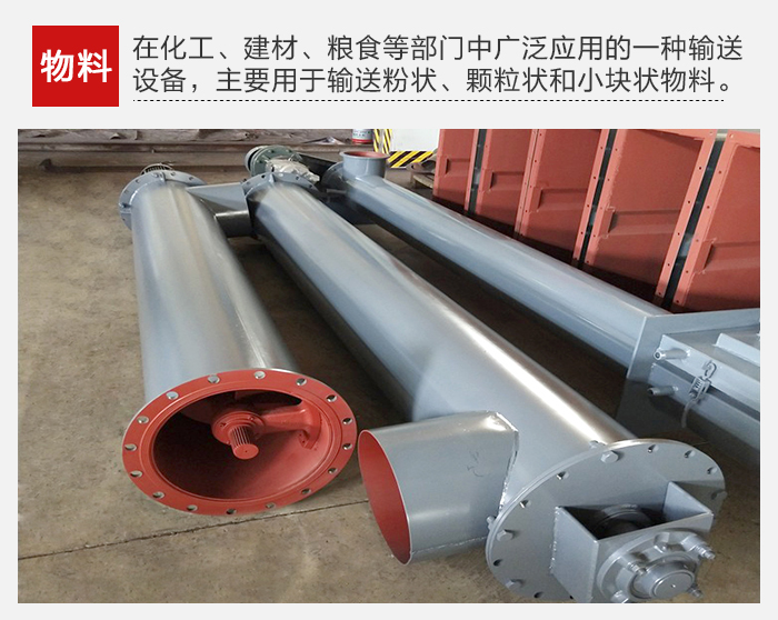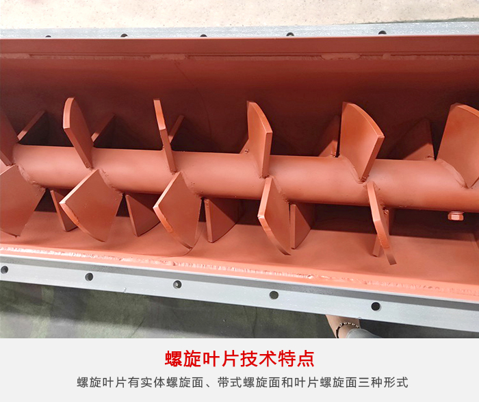 螺旋輸送機一般(bān)由輸送機本體、進出料口及驅動裝置三大部分組成;螺旋輸送(sòng)機的螺旋葉片有實體螺旋麵、帶式螺旋麵和葉片螺(luó)旋麵三種形式,其中(zhōng),葉(yè)片式螺旋麵應用相對較少,主要用於輸送粘度較大和可壓縮性物料,這種螺懸麵型,在完成輸送作業過程中,同時具有並(bìng)完成對物料的攪拌、混(hún)合等功能。