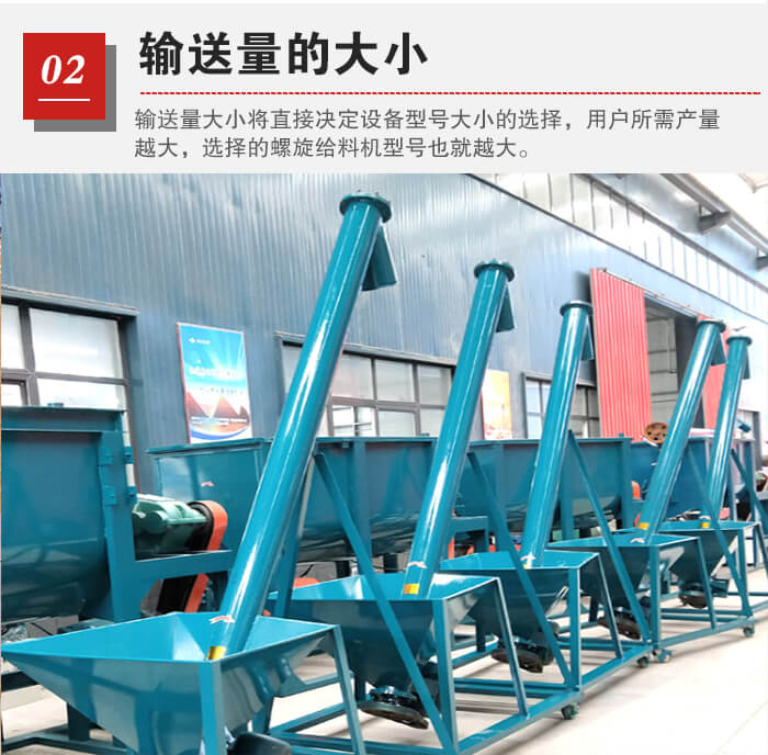 輸送量大小將直接決定設備(bèi)型號大小的選擇,用(yòng)戶所需產量越大,選擇的螺旋(xuán)給(gěi)料機型號也(yě)就越(yuè)大,用戶需要結合自身對產量的需求來選擇合適的型號。