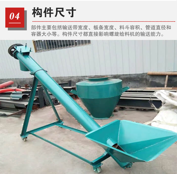 主要包括輸送帶寬度、板條(tiáo)寬度、料(liào)鬥容積、管道直徑和容(róng)器大小(xiǎo)等。這(zhè)些構件尺寸(cùn)都直接影響螺旋給料機的輸送能力。如螺旋輸(shū)送機管徑越大,效率也就越高。當然,並不一定就是輸送機本身才能影響效率,物料(liào)的(de)各種性質也(yě)都會對效率有所影響。