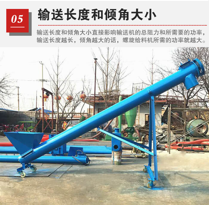 輸送長度和傾角大小直接影響輸送(sòng)機的總阻(zǔ)力和所需(xū)要的功率,輸送長度越長,傾(qīng)角越大的話,螺旋給料機(jī)所需的(de)功率(lǜ)就越大,所以在選型時需要說明這一點。