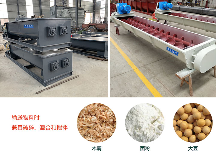 雙螺旋輸送機除了(le)能輸(shū)送物料外,還兼具破碎、混(hún)合和攪拌等功能;能在輸送物料的(de)同時(shí)對物料進行破碎和攪拌;特(tè)別適(shì)合攪拌且流動性差的(de)物(wù)料;如:木(mù)屑,麵粉,大(dà)豆等。