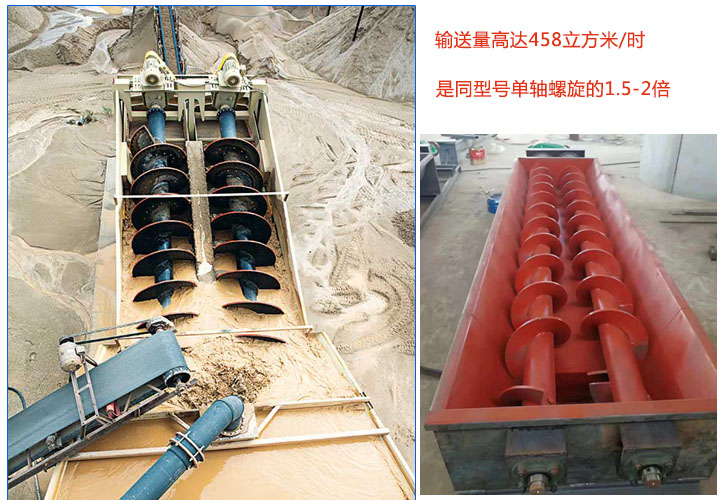 雙螺旋輸送機輸送量高達458立方米/時,由(yóu)於是兩根螺旋同(tóng)時旋轉可增大其輸送效率,其輸送量是(shì)同型號單軸(zhóu)螺旋輸送機的1.5-2倍;此外,還可多點裝料或卸料,可大大加(jiā)大(dà)輸(shū)送產(chǎn)量(liàng),一小(xiǎo)時可達100噸。