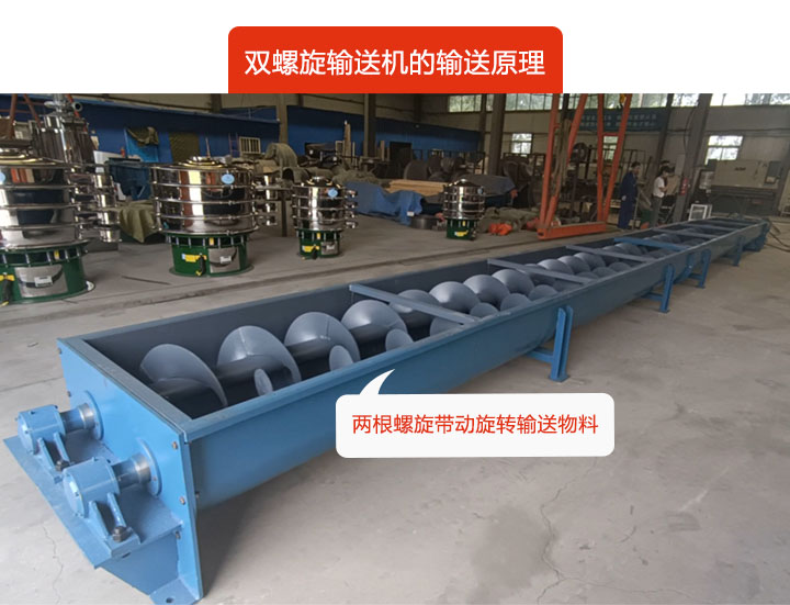 雙螺旋輸送機就是兩根螺旋帶動輸送物料,那麽他的輸送原理是怎(zěn)麽樣的呢?