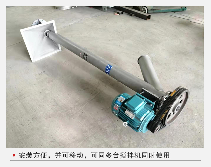 1、安裝方便,並可移動,如(rú)多(duō)台攪拌機使用同一種料,隻(zhī)需一台上料機可同時供多台(tái)拌料機上料,免除人工加料(liào)的麻煩(fán),使加料工作變的安全(quán),更省時、更省力。